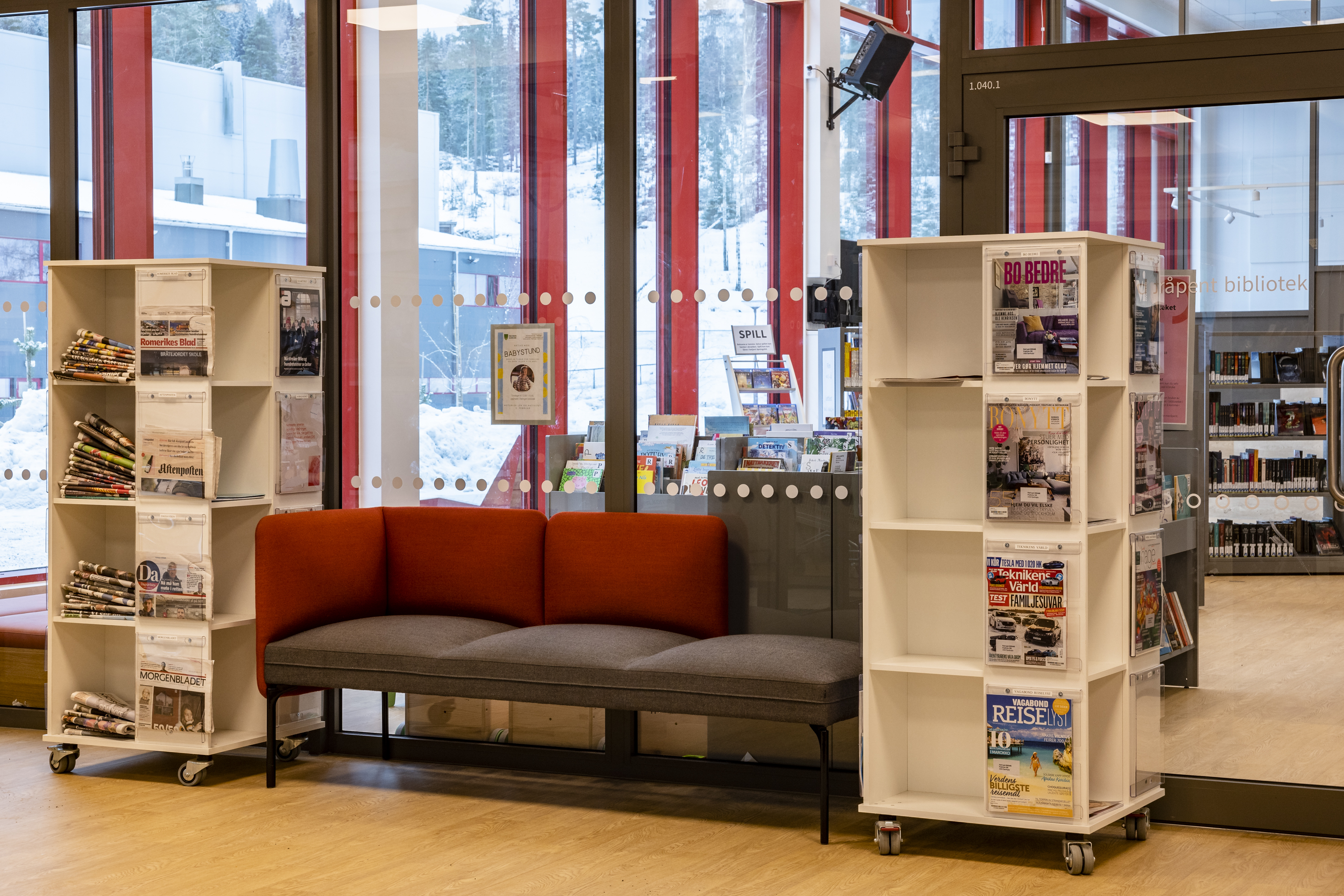 BS Eurobib in Norwegen hatte das Vergnügen, alle Regalsysteme, Theken, Sitzmöbel, Tische und viele der anderen Möbel zur Verfügung zu stellen.