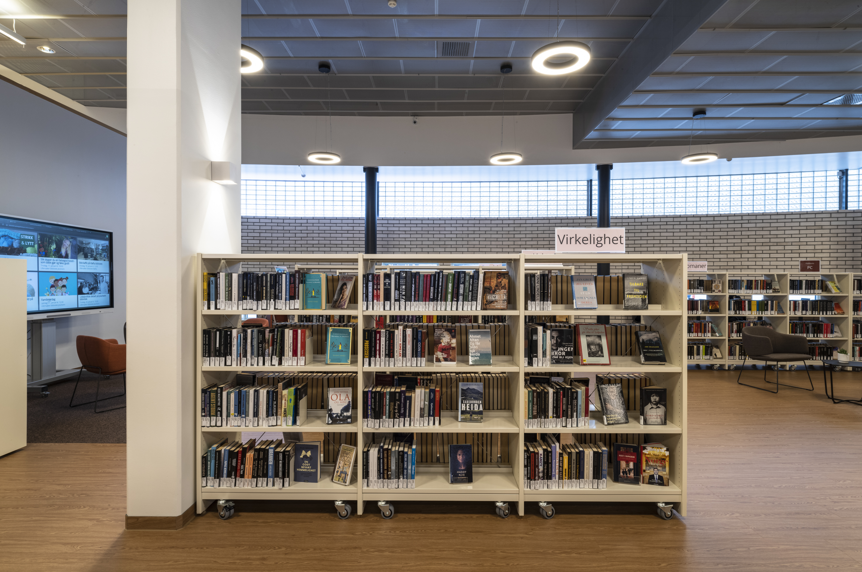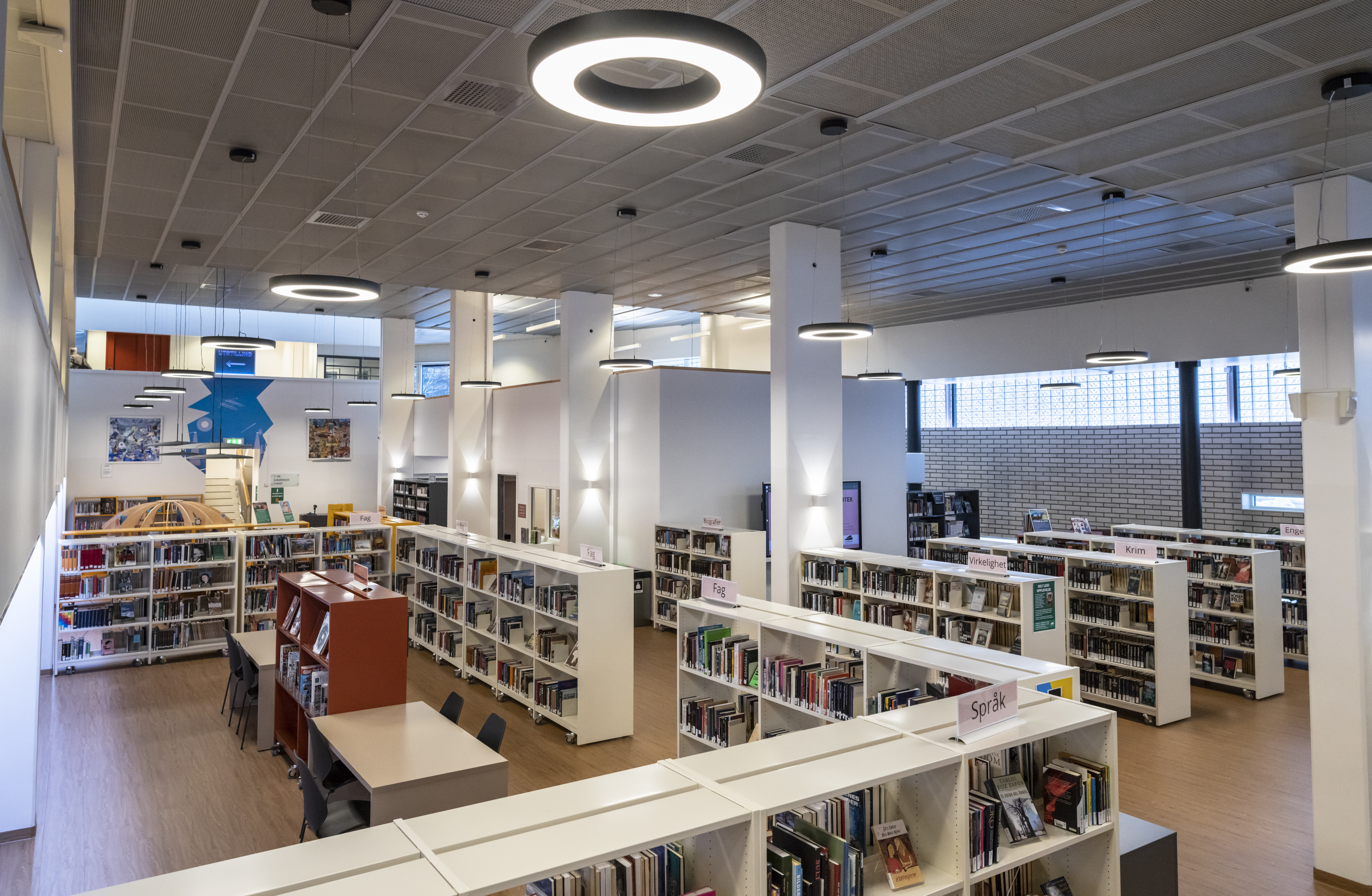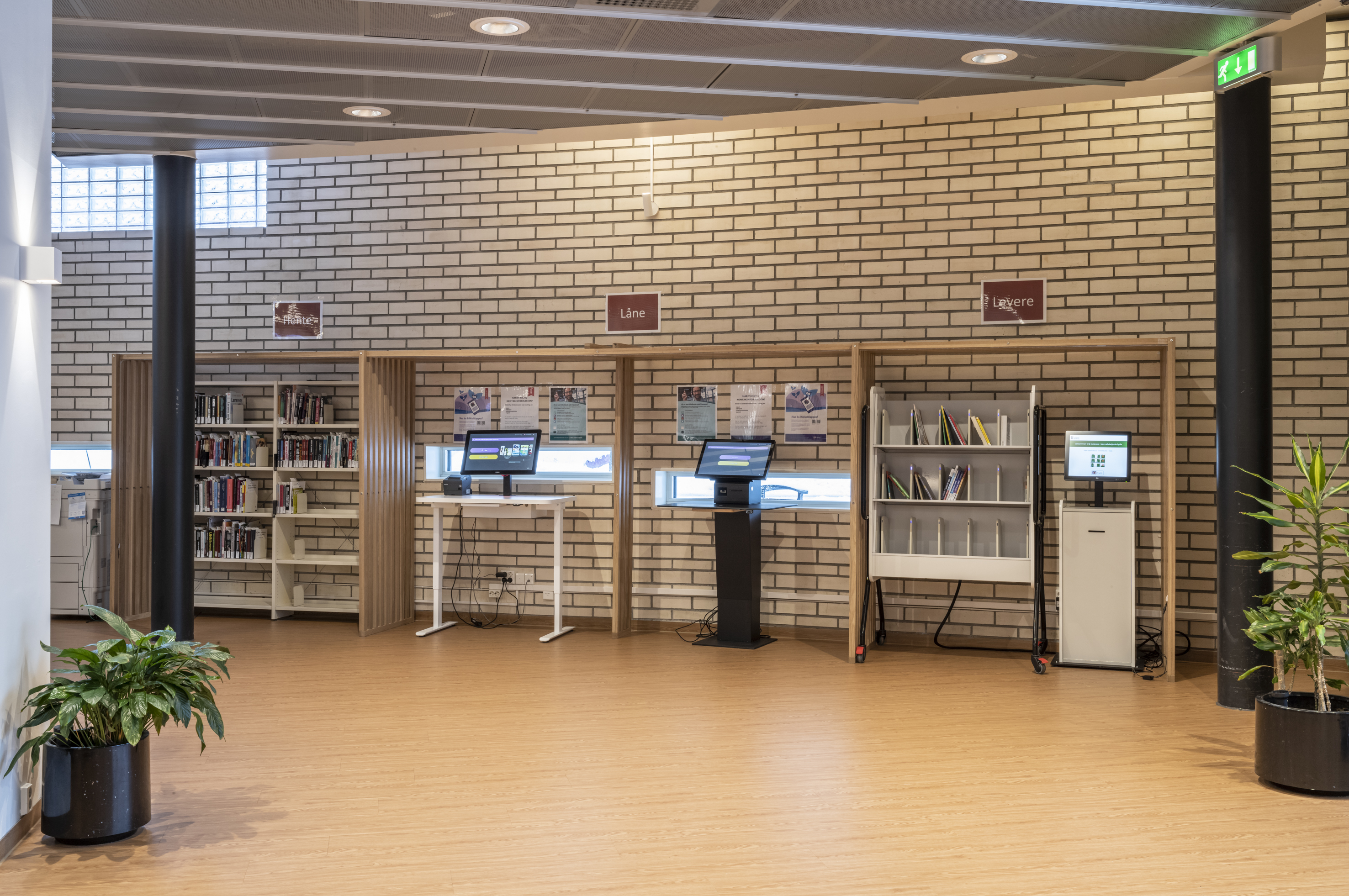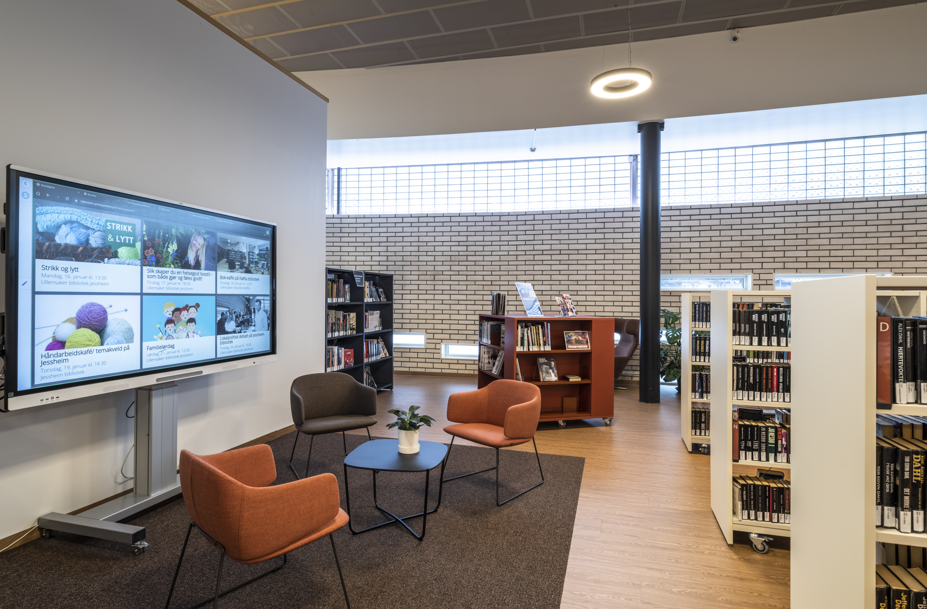 Die Bibliothek der Gemeinde Ullensaker befindet sich in der Stadt Jessheim. Am 5. Januar 2023 wurde sie nach einer umfangreichen Renovierung offiziell wiedereröffnet, wobei alle Möbel und Regalsysteme erneuert und in Schattierungen gefärbt wurden, die mit den Grundelementen der recycelten Räumlichkeiten harmonieren.