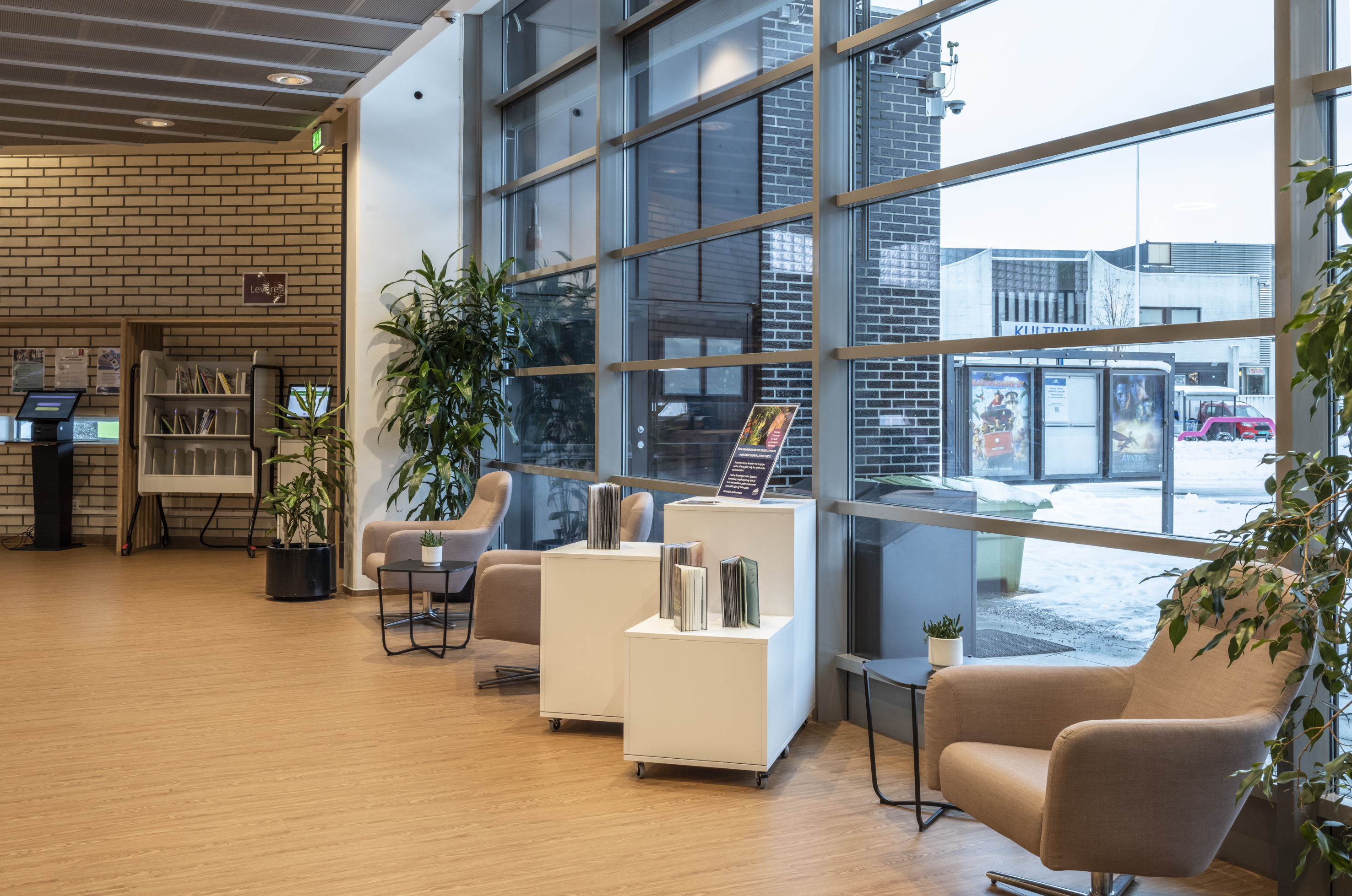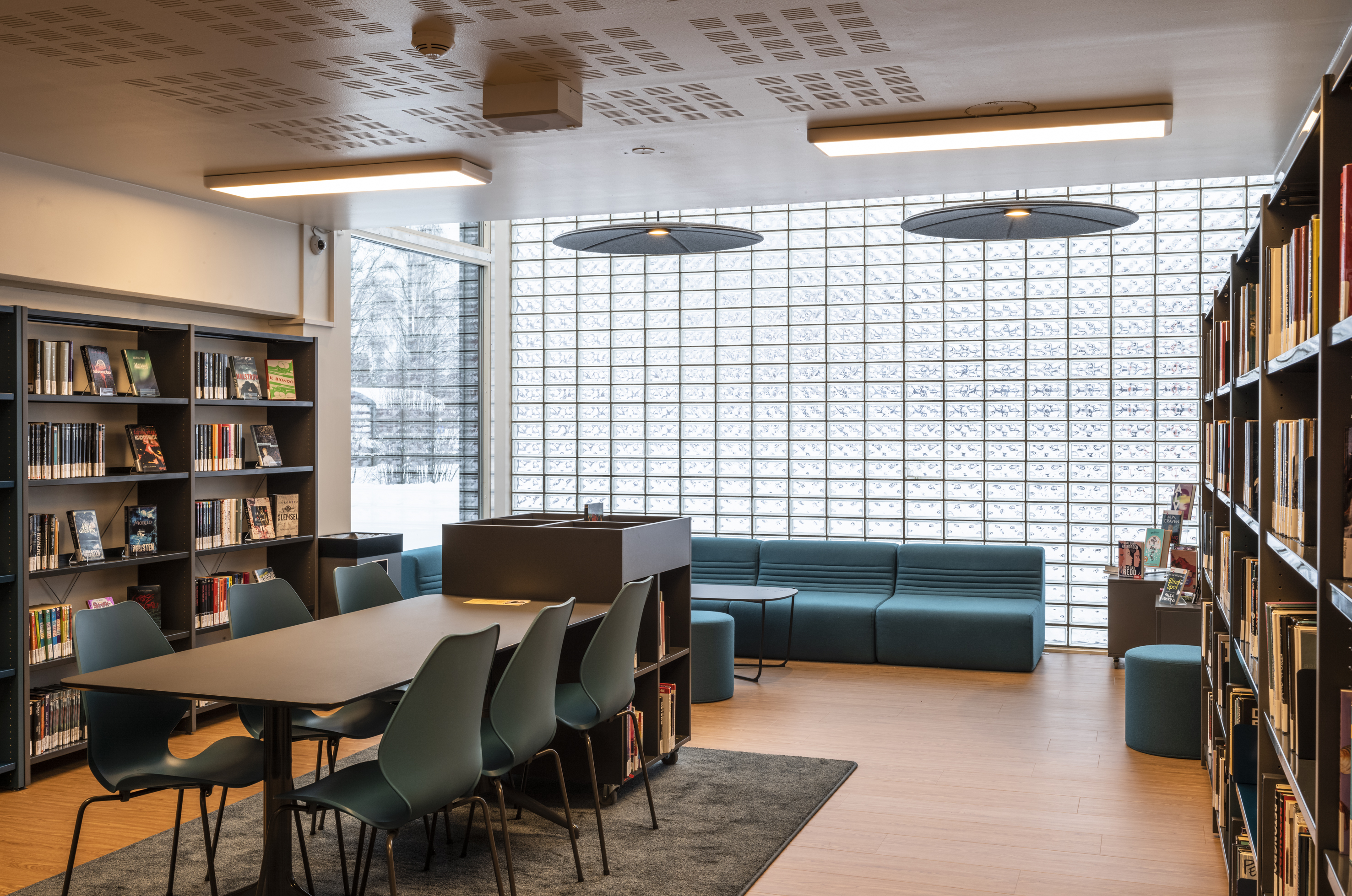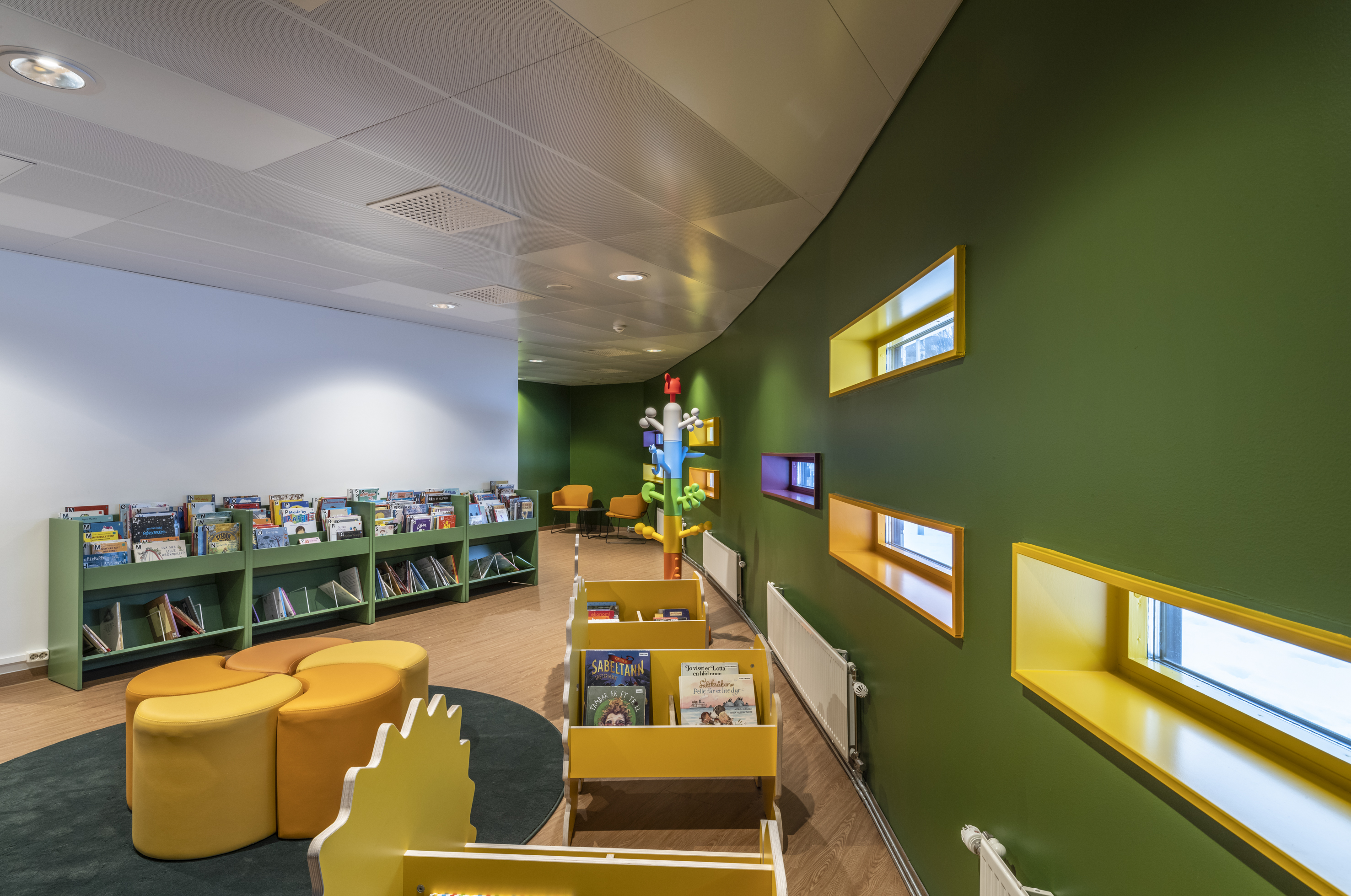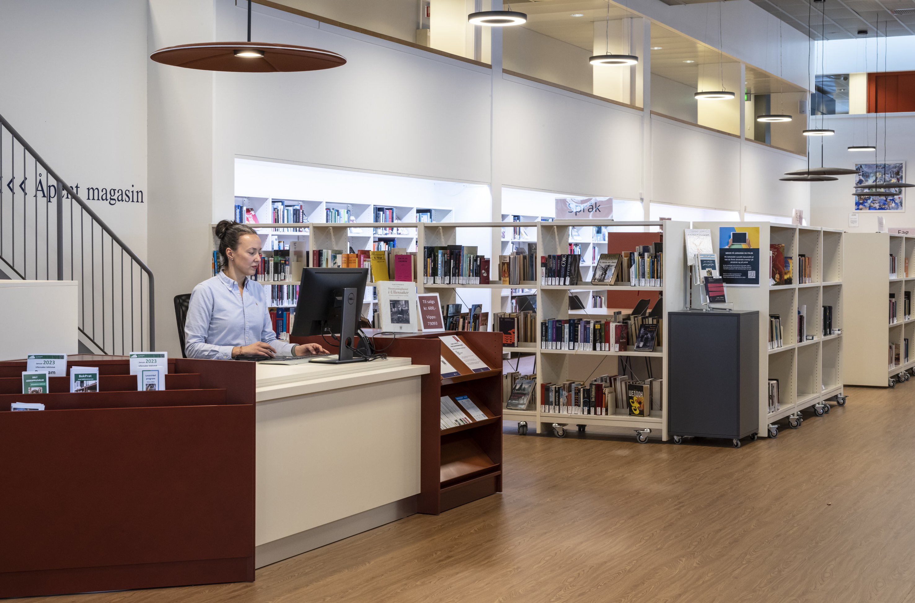 Die Bibliothek der Gemeinde Ullensaker befindet sich in der Stadt Jessheim. Am 5. Januar 2023 wurde sie nach einer umfangreichen Renovierung offiziell wiedereröffnet, wobei alle Möbel und Regalsysteme erneuert und in Schattierungen gefärbt wurden, die mit den Grundelementen der recycelten Räumlichkeiten harmonieren.