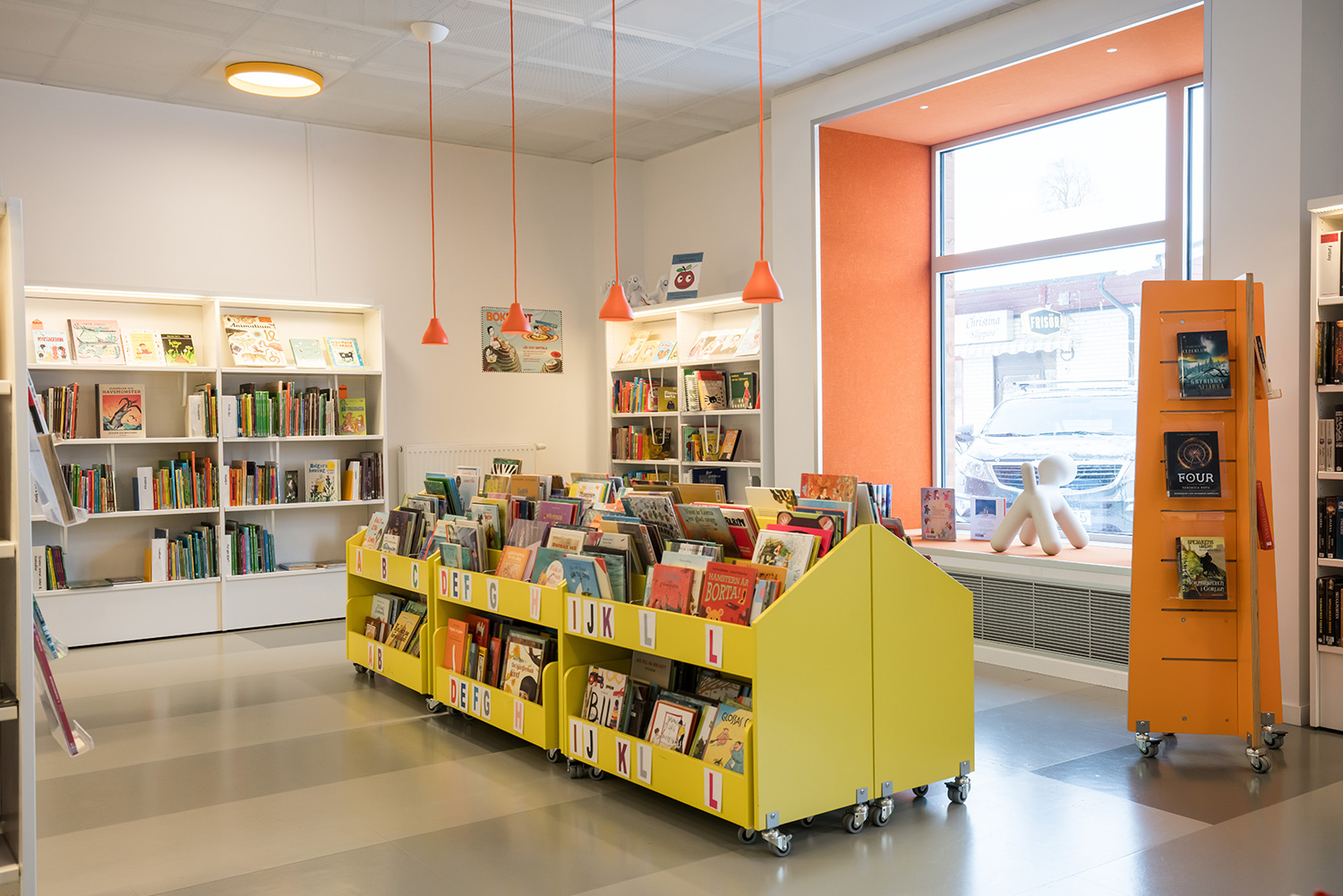Die Bibliothek ist in einem Gebäude untergebracht, das mit seinen großen Fenstern den Vorzug natürlichen Lichteinfalles bietet. Das Ergebnis ist eine helle und einladende Umgebung. Sämtliche Altersgruppen sind berücksichtigt. Es gibt eine attraktive Kinderabteilung und verschiedene Lese- und Arbeitszonen mit leichtem Zugang zu den Bibliotheksmaterialien auf Regalfachböden mit integrierter Beleuchtung.