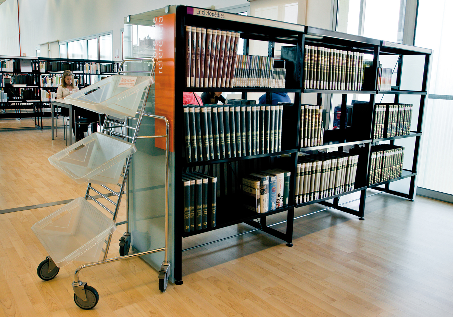 Màrius Cuintana, an architect from Barcelona and the curator of the Mies Van Der Rohe Pavilion since 1999, designed the building for the library. It is signified by lightness, transparency, spaciousness and functionality. The Opal Shelving System makes a perfect fit to the architecture.