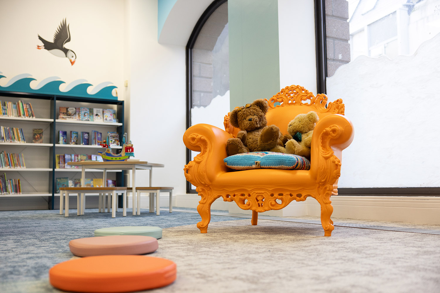 Dieser großzügige Sessel für Erwachsene lädt zu Momenten echter Literaturgenüsse oder zum Vorlesen mit den Jüngsten ein.