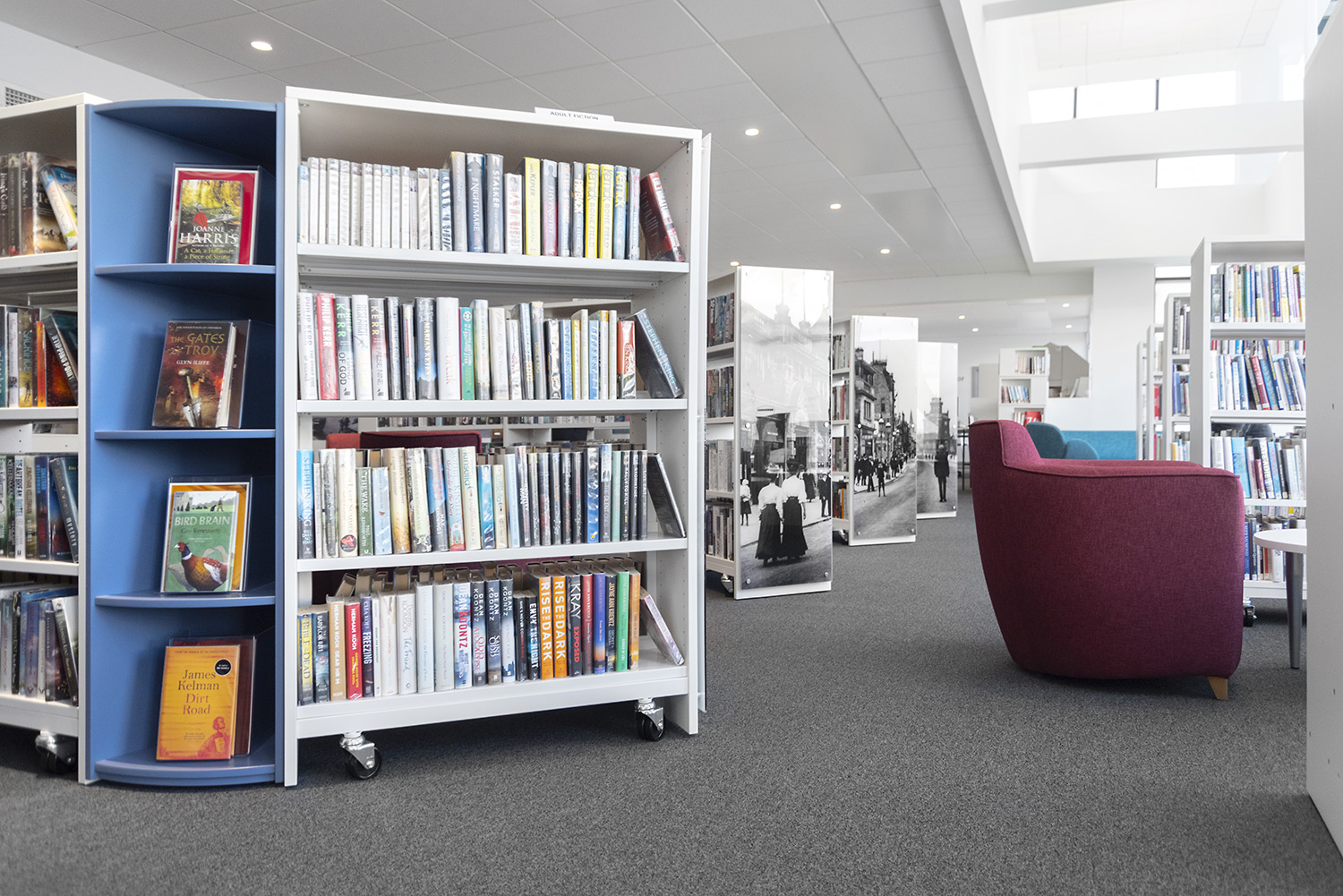 Vierseitiger Präsentationsturm zur Ausstellung von Büchern, Zeitschriften usw.