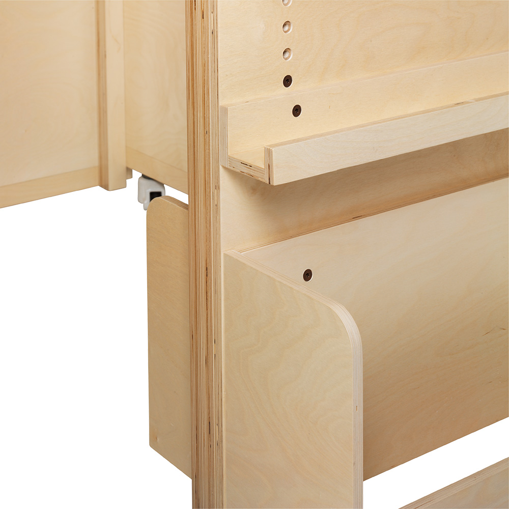 Raffinierte Fachböden und Körbe für die jungen Nachwuchsbibliothekare.