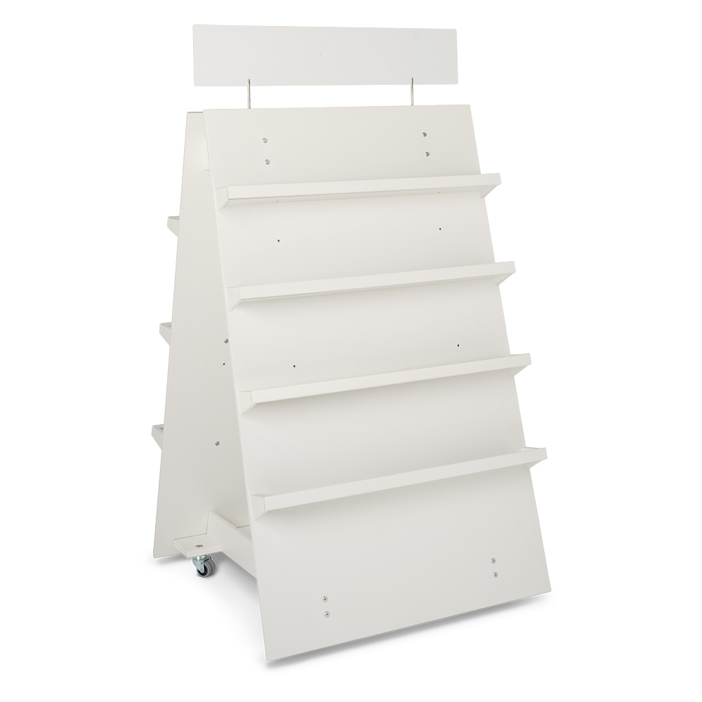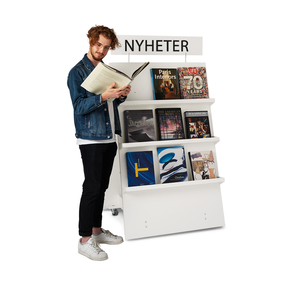 Alle Mediengrößen können hier präsentiert werden mit einstellbaren Fachböden. Nutzen Sie drei oder vier Fachböden je nach Mediengröße mit Frontanschlag pro Seite.