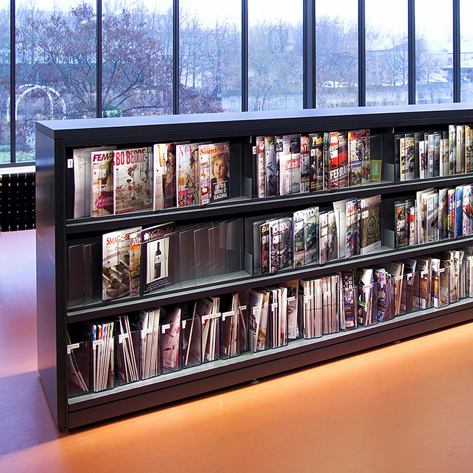 Raffinierte Schilderkassette zur Ausstellung von Zeitschriften.