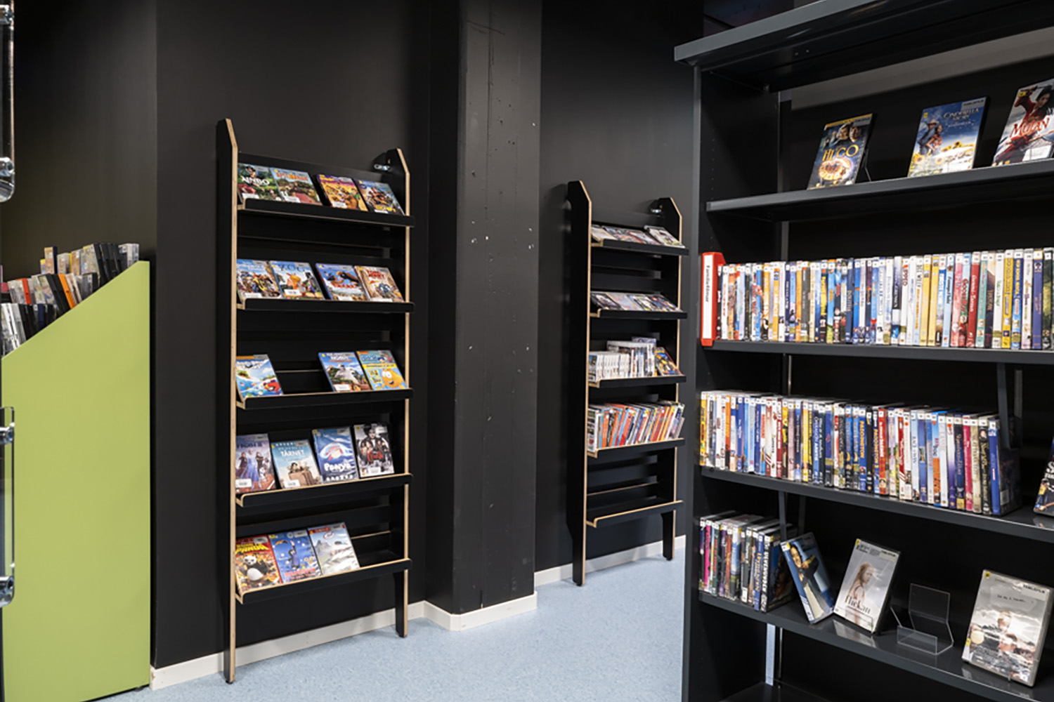 Hier geht es um laminiertes Birkensperrholz, auf dem Foto mit sichtbaren Kanten. Damit lassen sich eine strapazierfähige Oberfläche und eine langlebige Konstruktion erzielen. Ideal für die meisten stark beanspruchten Bibliotheksumgebungen!