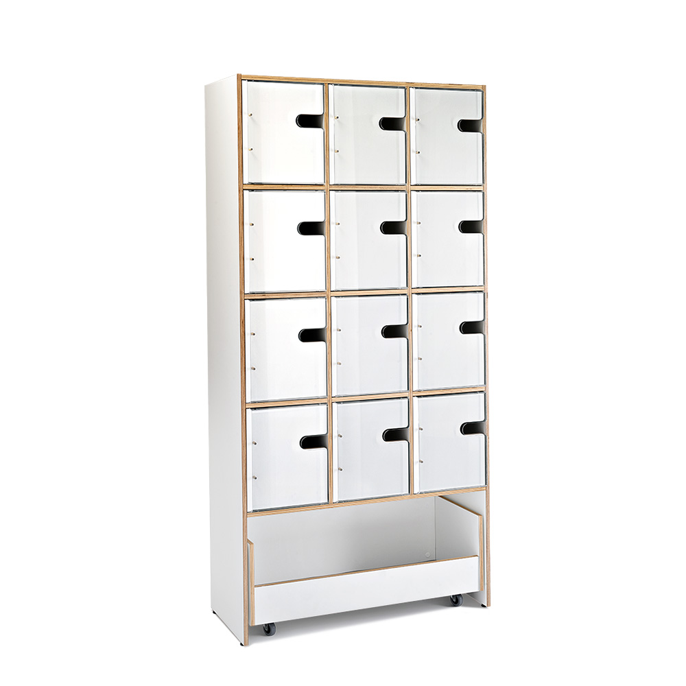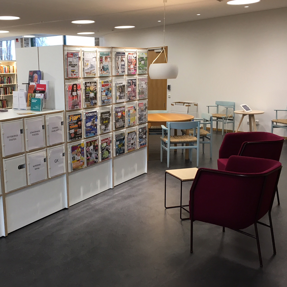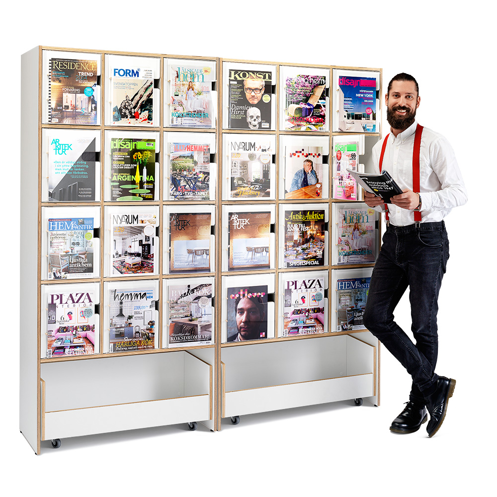 Schlaue Präsentation und Aufbewahrung von Zeitschriften und anderen Titeln. Die Schranktüren haben eine Acrylfrontabdeckung; großzügige Ausstellungstiefe (auch ideal für etwas dickere Magazinen).